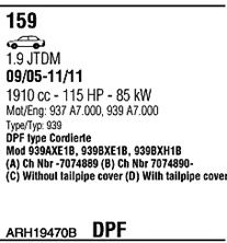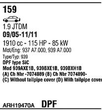 Для транспортных средств с дизельным фильтром тонкой очистки; код двигателя - 939A2.000; тип модели - 939BXE1B