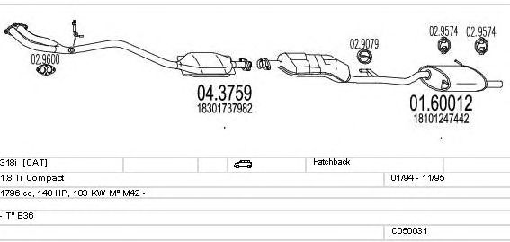 Глушитель в сборе: BMW, 3 Compact (E36)