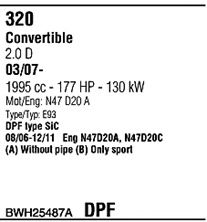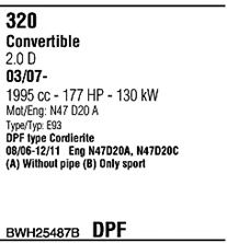 Для транспортных средств с дизельным фильтром тонкой очистки; код двигателя - N47; тип модели - E93
