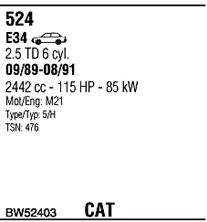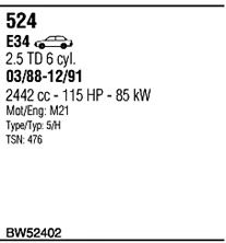 Раб. объем (округленный) - 2,4; тип модели - E34; вар. оснащения - Sedan; до года вып. - 12/1991; раб. объем (точн.) - 2443; мощность - 85