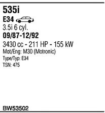 до года вып. - 12/1992; код двигателя - M30 (Motronic); тип модели - E34