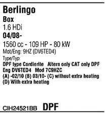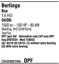 код двигателя - 9HZ (DV6TED4); Для транспортных средств с дизельным фильтром тонкой очистки; начиная с г. вып. - 05/2008