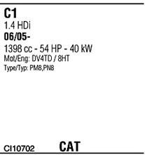 Раб. объем (округленный) - 1,4; тип модели - PN8HTC; до года вып. - 12/2010; раб. объем (точн.) - 1398; код двигателя - DV4TD; Исполнение днищевой планки - Kat; мощность - 40