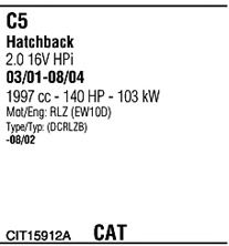 С регулируемым катализатором (3-х ступенчатый); до года вып. - 08/2002; код двигателя - EW10D; до номера шасси - NR.PR.09425; тип модели - DERLZB