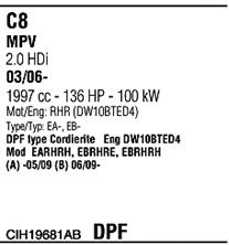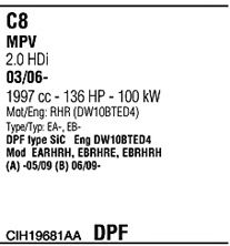 код двигателя - RHR (DW10BTED4); Для транспортных средств с дизельным фильтром тонкой очистки; начиная с г. вып. - 07/2006