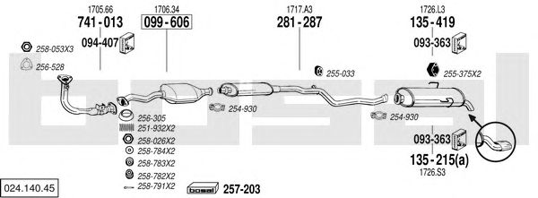 Глушитель в сборе: CITROEN, SAXO (S0, S1)