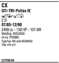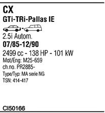 до года вып. - 12/1990; код двигателя - M25659; Число дверей - 5; тип модели - GTi/TRi/Pallas IE