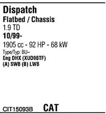 Для автомобилей без катализатора; код двигателя - XUD9TE