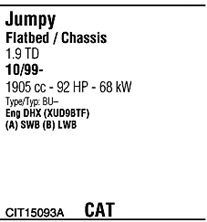 до года вып. - 02/2001; Для автомобилей без катализатора; код двигателя - XUD9TE