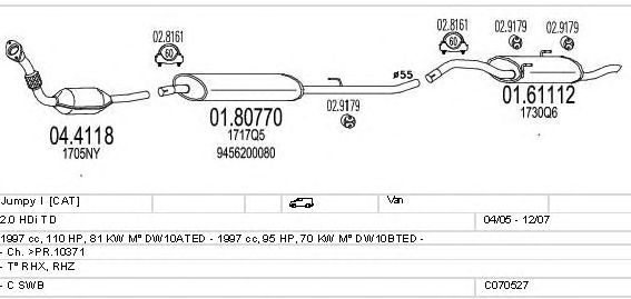 Раб. объем (округленный) - 2; тип модели - RHZ; вар. оснащения - Van; Число дверей - ACCCA; начиная с г. вып. - 04/2005; до года вып. - 12/2007; раб. объем (точн.) - 1997; код двигателя - DW10ATED; с № шасси - >PR.10371; Исполнение днищевой планки - Kat; мощность - 81