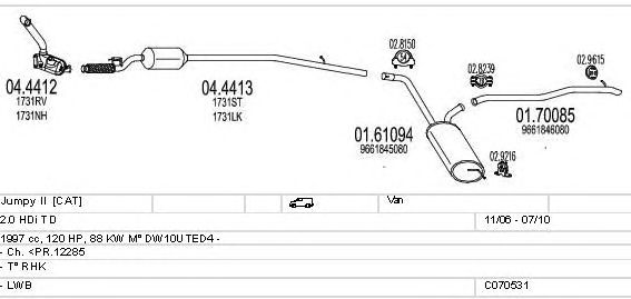 Раб. объем (округленный) - 2; тип модели - RHK; вар. оснащения - Van; Число дверей - b; до года вып. - 07/2010; раб. объем (точн.) - 1997; код двигателя - DW10UTED4; до номера шасси -