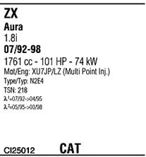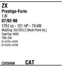 Раб. объем (округленный) - 1,8; тип модели - N2E4; вар. оснащения - Hatchback; Число дверей - AA; раб. объем (точн.) - 1761; код двигателя - XU7JP; Исполнение днищевой планки - Kat; мощность - 76