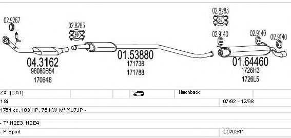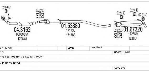Раб. объем (округленный) - 1,8; тип модели - N2E4; вар. оснащения - Hatchback; раб. объем (точн.) - 1761; код двигателя - XU7JP; Исполнение днищевой планки - Kat; мощность - 76