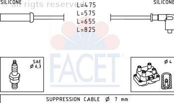 Длина кабеля [мм]: 365 / 465 / 515 / 715 Количество: 4 Провод зажигания: Исполнение соединения SAE / Сопротивление провода зажигания Катушка зажигания: Исполнение соединения М4 для патрубка диаметром [мм]: 7