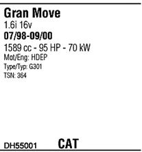 начиная с г. вып. - 09/2000; код двигателя - HDEP; тип модели - G301