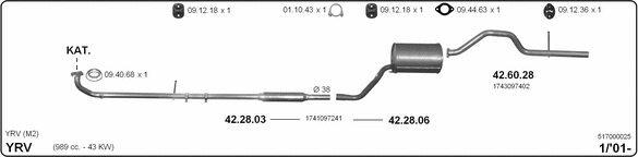Раб. объем (округленный) - 1; тип модели - M200; до года вып. - 08/2006; раб. объем (точн.) - 989; код двигателя - EJ; Исполнение днищевой планки - Kat; мощность - 43