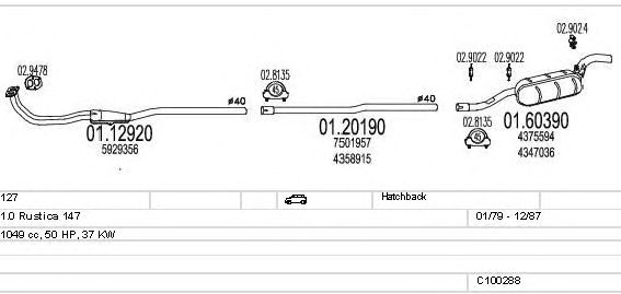 Раб. объем (округленный) - 1; тип модели - Rustica 147; вар. оснащения - Hatchback; до года вып. - 12/1987; раб. объем (точн.) - 1049; мощность - 37
