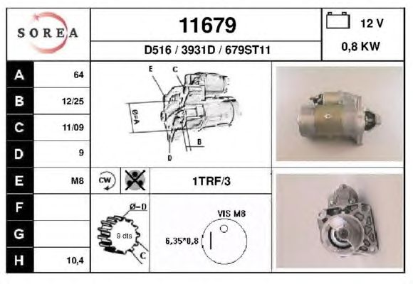 Мощность стартера [кВт]: 0,8