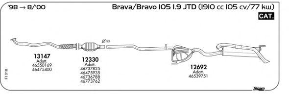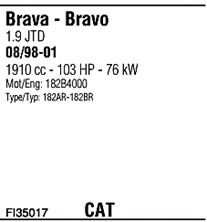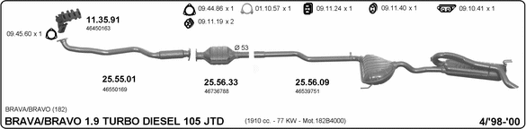 Раб. объем (округленный) - 1,9; тип модели - 182AV1AA; вар. оснащения - Hatchback; Число дверей - A; начиная с г. вып. - 09/2000; раб. объем (точн.) - 1910; код двигателя - 182B9.000; Исполнение днищевой планки - Kat; мощность - 74