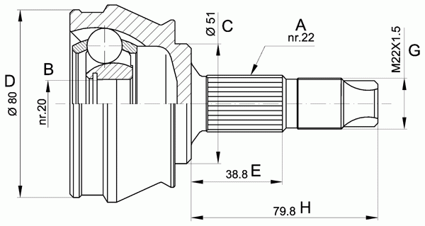 Внешнее зубчатое соединение со стороны колеса: 22