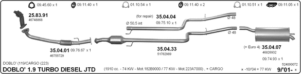 Глушитель в сборе: FIAT, DOBLO Cargo (223)