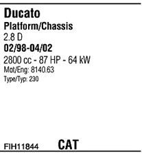 Раб. объем (округленный) - 2,8; тип модели - Diesel; до года вып. - 01/2002; раб. объем (точн.) - 2798; код двигателя - 8140.63; Исполнение днищевой планки - Kat; мощность - 64