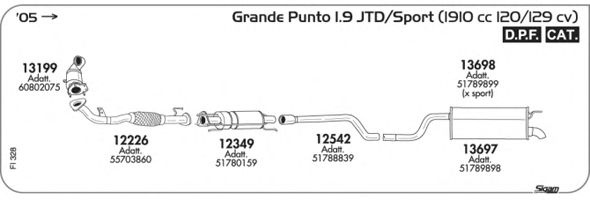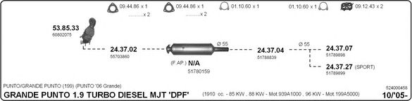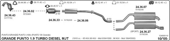 Раб. объем (округленный) - 1,9; тип модели - 199BXF1B; вар. оснащения - Hatchback; раб. объем (точн.) - 1910; код двигателя - 939A1.000; Исполнение днищевой планки - Kat; мощность - 88