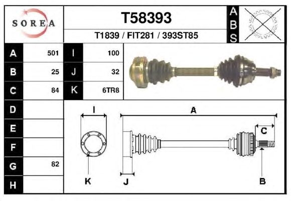 Приводной вал: Без кольца ABS