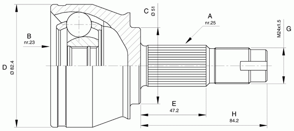 Зубчатое соединение со стороны коробки: 25