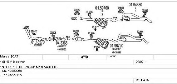 Раб. объем (округленный) - 1,6; тип модели - 185AXH1A; вар. оснащения - Sedan; Число дверей - A; раб. объем (точн.) - 1581; код двигателя - 185A3.000; до номера шасси - <9889058; Исполнение днищевой планки - Kat; мощность - 76