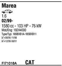 Раб. объем (округленный) - 1,6; тип модели - 185BXB; вар. оснащения - Sedan Stationwagon; раб. объем (точн.) - 1581; код двигателя - 182A4.000; до номера шасси - <9.889.059; Исполнение днищевой планки - Kat; мощность - 76