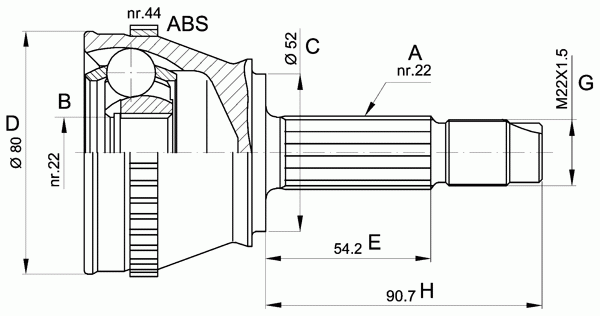 Число зубцов кольца ABS: 44