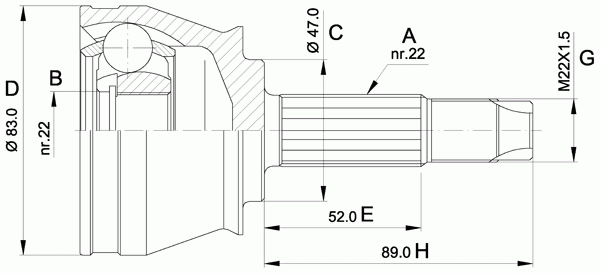 Внешнее зубчатое соединение со стороны колеса: 22