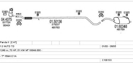 Раб. объем (округленный) - 1,3; тип модели - 169AXC1A; до года вып. - 06/2005; раб. объем (точн.) - 1248; код двигателя - 188A9.000; Исполнение днищевой планки - Kat; мощность - 51