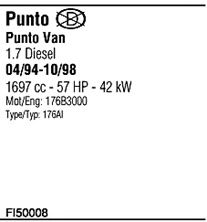 Раб. объем (округленный) - 1,7; тип модели - 176AL; вар. оснащения - Hatchback; Число дверей - A; до года вып. - 12/1996; раб. объем (точн.) - 1698; код двигателя - 176B3.000; мощность - 42