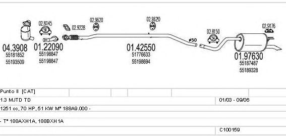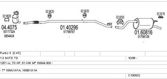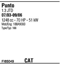 Раб. объем (округленный) - 1,3; тип модели - 188BXH1A; Число дверей - A; начиная с г. вып. - 10/2006; раб. объем (точн.) - 1251; код двигателя - 188A9.000; Исполнение днищевой планки - Kat; мощность - 51