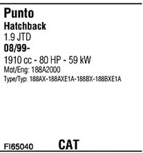 Раб. объем (округленный) - 1,9; тип модели - 188BXE1A; вар. оснащения - Hatchback; до года вып. - 12/2006; раб. объем (точн.) - 1910; код двигателя - 188A2.000; Исполнение днищевой планки - Kat; мощность - 59
