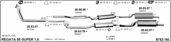 Раб. объем (округленный) - 1,6; тип модели - 138R54A; вар. оснащения - Sedan Stationwagon; до года вып. - 04/1986; раб. объем (точн.) - 1598; мощность - 62