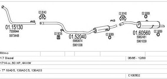 Глушитель в сборе: FIAT, STRADA II (138A)