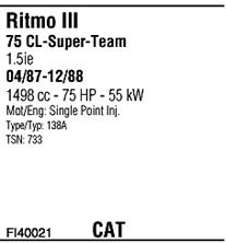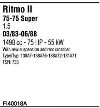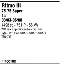 до года вып. - 06/1988; тип модели - 138A7-138A76-138A72-; вар. оснащения - rear crossbar; No. техинформации - 31857