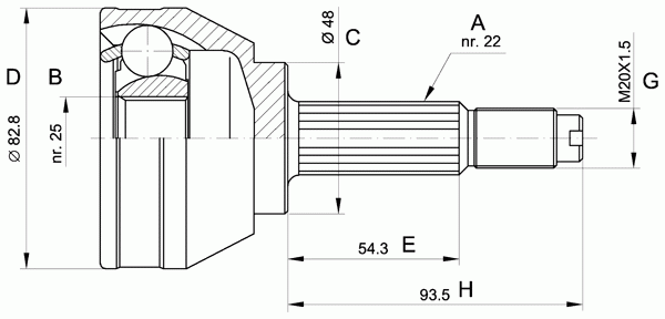 Тип соединения / сочленения: Шарнир равных угловых скоростей