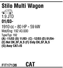 С регулируемым катализатором (3-х ступенчатый); начиная с г. вып. - 11/2003; до года вып. - 12/2005; код двигателя - 192A3.000; с № шасси - 000.185.829; тип модели - 192CXF1A