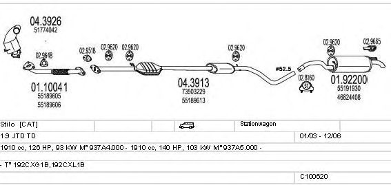 Раб. объем (округленный) - 1,9; тип модели - 192CXL1B; вар. оснащения - Stationwagon; до года вып. - 12/2006; раб. объем (точн.) - 1910; код двигателя - 937A4.000; Исполнение днищевой планки - Kat; мощность - 93