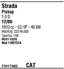 Раб. объем (округленный) - 1,9; тип модели - Diesel; вар. оснащения - Pick-up; раб. объем (точн.) - 1910; код двигателя - 223A6.000; Исполнение днищевой планки - Kat; мощность - 46