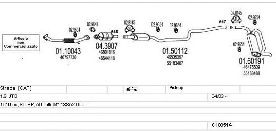 Раб. объем (округленный) - 1,9; тип модели - JTD; вар. оснащения - Pick-up; раб. объем (точн.) - 1910; код двигателя - 188A2.000; Исполнение днищевой планки - Kat; мощность - 59