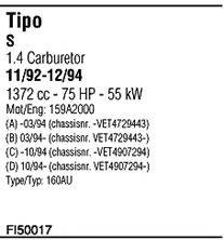 мощность - 57; код двигателя - 159 A2.000