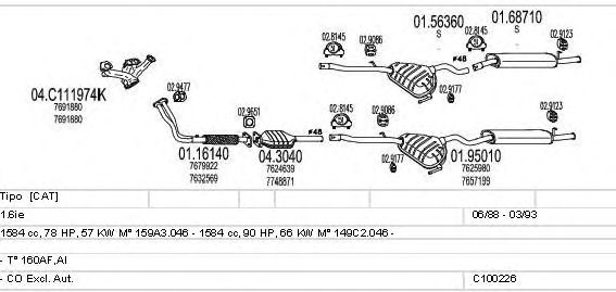 Раб. объем (округленный) - 1,6; тип модели - AI; до года вып. - 03/1993; раб. объем (точн.) - 1584; код двигателя - 149C2.046; Исполнение днищевой планки - Kat; мощность - 66