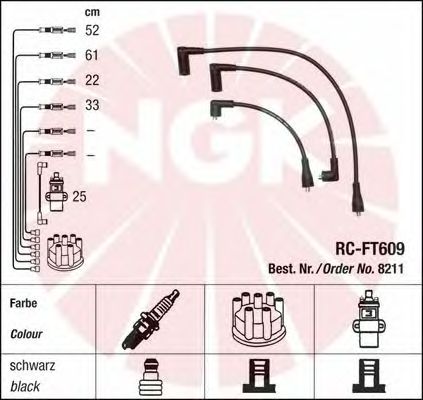 Провод зажигания: Включая наконечник, вставляемый в катушку / Исполнение соединения DIN