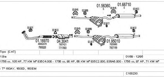 Раб. объем (округленный) - 1,8; тип модели - 160EM; раб. объем (точн.) - 1756; код двигателя - 835C4.000; Исполнение днищевой планки - Kat; мощность - 77