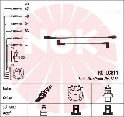 Провод зажигания: Включая наконечник, вставляемый в катушку / Исполнение соединения DIN